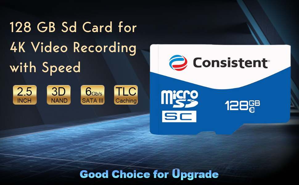 Consistent 128 GB Sd Card for 4K Video Recording 5 Year Warranty.
